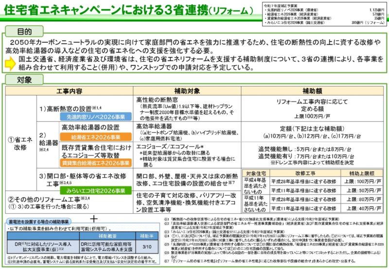 これまでの「住宅省エネ2025キャンペーン」などに続き、来年も国交省・経産省・環境省が連携して、私たちの住まいの省エネ化を強力にバックアップしてくれます。